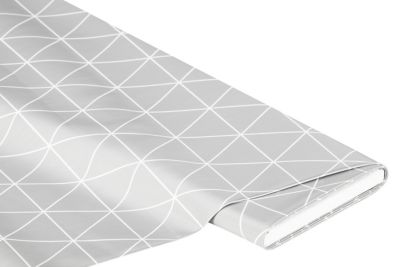 Abwaschbare Tischwäsche/Wachstuch "Dreieck", Farbe: hellgrau, Motivgrösse: 6,5 x 6,5 cm, Breite: 140 cm, Gewicht: ca. 310 g/m². Material: Grundmaterial 100 % Polypropylen, Beschichtung 100 % Polyvinylchlorid.
