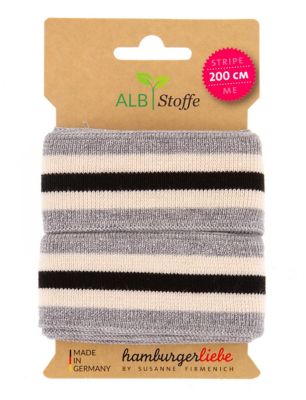 Albstoffe Bio-Band "Stripe Me Glam", grau/ecru/schwarz, 2 m