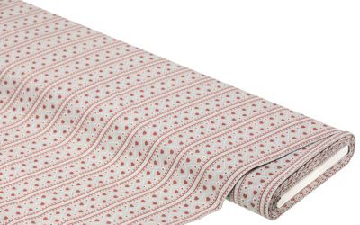 Exklusiv von buttinette: Baumwollstoff "Folklore", Farbe: grau/bordeaux, aus der Quiltserie "Mona", aus besonders feiner, weicher und hochveredelter Baumwolle (Renforcé), Bordürenbreite: 4,5 cm, Breite: 150 cm, Gewicht: ca. 130 g/m². Material: 100 % Baumwolle.