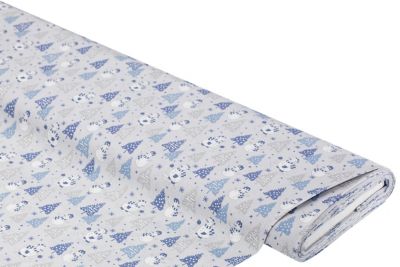 Exklusiv von buttinette: Baumwollstoff "Schneemann", Farbe: grau-color, aus der Quiltserie "Mona", aus besonders feiner, weicher und hochveredelter Baumwolle (Renforcé), Motivgrösse Schneemann auf Ski: 4 x 3,5 cm, Breite: 150 cm, Gewicht: ca. 130 g/m². Material: 100 % Baumwolle.