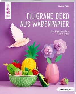 "Filigrane Deko aus Wabenpapier". Basteln mit Wabenpapier kann so einfach sein! Kreativ-Expertin Susanne Pypke zeigt Ihnen, wie Sie mit ein paar gezielten Schnitten tolle Papiermodelle für jede Jahreszeit zaubern. Ganz egal, ob es ein farbenfroher Blumenstrauss für die Kaffeetafel, ein zarter Vogel zum Aufhängen oder ein Reh für die weihnachtliche Fensterbank sein soll – dank leicht verständlichen Anleitungen, einer übersichtlichen Grundanleitung sowie Vorlagen zu allen Modellen gelingt jedes Motiv. So können Sie im Handumdrehen wunderschöne Deko zum Aufstellen, Aufhängen und Verschenken kreieren und auch mit eigenen Ideen kreativ werden! Buch mit 48 Seiten. Grösse: 21 x 17 cm.