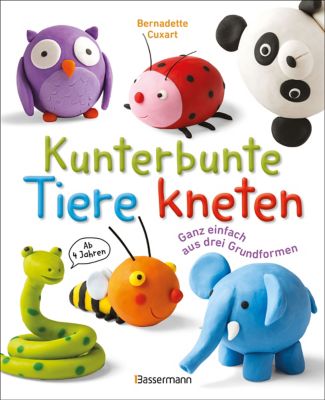 "Kunterbunte Tiere kneten". Diese bunten Knettiere begeistern und sind auch für Kinder ab 4 Jahren ganz leicht herzustellen. Denn sie bestehen aus den drei Grundformen "Tropfen", "Kugel" und "Wurm". Dank der gut nachvollziehbaren Schritt-für-Schritt-Anleitungen können Eltern mit ihren Kindern 46 Tiere aus Knete formen: Pinguin, Krokodil, Frosch, Katze, Känguru und viele mehr. Buch mit 96 Seiten. Grösse: 24 x 19,5 cm.