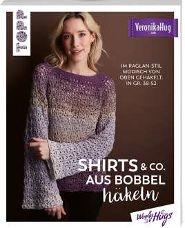 "Shirts & Co. aus Bobbel häkeln". Für alle Häkel-Fans: Mit den angesagten Bobbel-Farbverlaufsgarnen werden diese tollen Oberteile in einem Stück von oben gehäkelt. Bequeme Tops, modische Pullis, coole Shirts und dekorative Shrugs entstehen fast ohne Nähte und lästiges Vernähen. Die filigranen Muster werden mit übersichtlichen Strickschriften ganz einfach gearbeitet. Bestseller-Autorin Veronika Hug hat alle Designs im Raglan-Stil für die Grössen 38 bis 52 entwickelt und mit ihren effektvollen Farbverlaufsgarnen gestaltet. Buch mit 48 Seiten. Grösse: 17 x 21 cm.