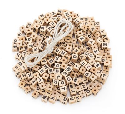 Basteln Sie sich aus diesen Buchstabenwürfeln aus Holz lustige Armbänder, Ketten oder Schlüsselanhänger.