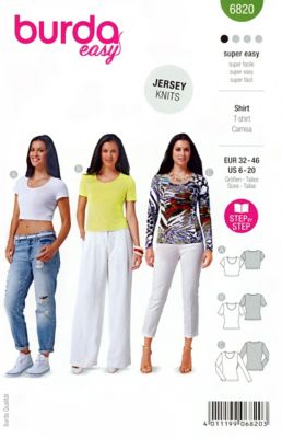 burda Schnitt "Basic Shirt", Anleitung für 3 Modelle, Shirt-Schnitt ohne Schnickschnack in taillierter Passform mit Rundausschnitt für die vielen tollen Jerseys in schickem Print, Streifen oder in Uni. Grösse 32–46, Schwierigkeitsstufe: sehr leicht, Stoffempfehlung: bi-elastische Stoffe, Jersey.