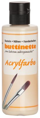 Die buttinette Acrylfarbe ist wunderbar cremig und dadurch leicht zu vermalen, trocknet schnell und ist somit wieder rasch übermalbar. Die samtmatte Farbe besitzt eine gute Deckkraft und trocknet wasserfest und speichelecht; sie kann mit Pinsel oder Malspachtel/-messer vermalt werden. Die brillanten Farbtöne sind untereinander mischbar und bei Bedarf mit Wasser verdünnbar. Die universelle Acrylfarbe garantiert beste Ergebnisse in allen Acrylmaltechniken auf Leinwand, Papier, Karton, Holz, selbsthärtenden Modelliermassen und vielem mehr und eignet sich neben dem Malen von Bildern auch für das kreative Gestalten auf traditionellen Basteluntergründen ebenso wie für das Malen im Kunstunterricht.