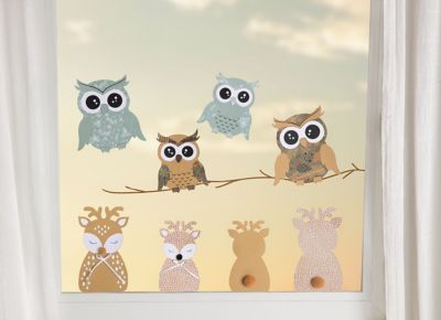 buttinette Bastel-Set Fensterbilder "Rehe & Eulen", 12 Stück – Vorlagen bereits vorgedruckt