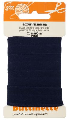 buttinette Falzgummi, Farbe: marine, Breite: 2 cm, Länge: 5 m. Material: 75 % Polyamid, 25 % Elasthan.