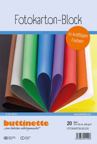 Fotokarton-Block, exklusiv von buttinette, Farbe: bunt, Grösse 24 x 34 cm, Gewicht: 300 g/m², Inhalt: 20 Blatt in 10 verschiedenen Farben.