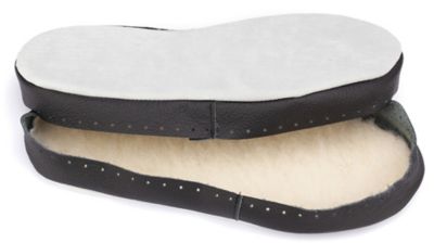 Werden Sie kreativ und machen Sie Hausschuhe oder Hüttenschuhe jetzt ganz einfach selber – mit den buttinette Ledersohlen. Die Sohlen passen an gestrickte Hüttenschuhe genauso wie an normale Wollsocken und werden einfach rundherum von Hand angenäht. Die neue, verbesserte Passform bietet auch breiteren Füssen ausreichend Platz. Eine Einlage aus reiner Lammwolle sorgt für wunderbar warme Füsse, wobei überschüssige Wärme aber abgegeben wird. Die Ledersohle macht Ihre Hüttenschuhe rutschfest – besonders bei Kindern ein grosses Plus.