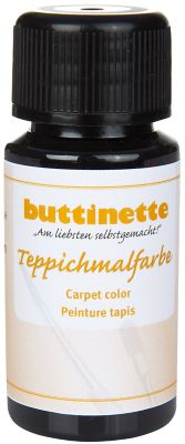 buttinette Teppichmalfarbe, zum Bemalen von Fussmatten. Nach Trocknung und anschliessender Fixierung mit dem Fön ist die Farbe wasserfest, Inhalt: 50 ml.