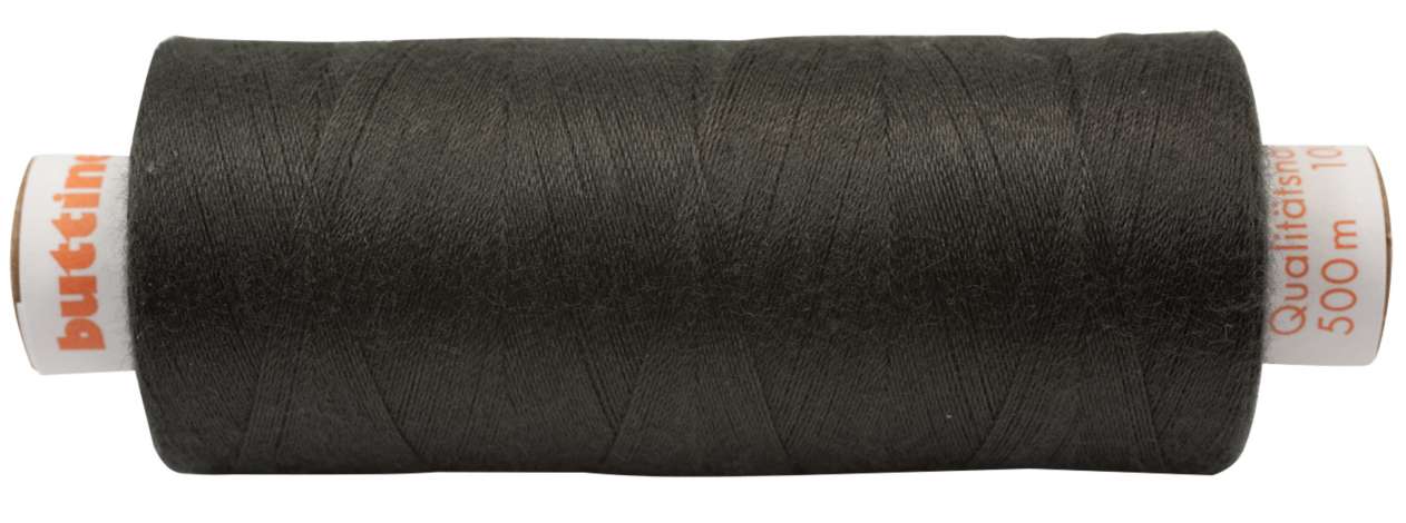 buttinette Universal-Nähgarn, Farbe: anthrazit, Fadenstärke 100, Nadelstärke: 60 - 100, 500 m pro Spule. Material: 100 % Polyester.