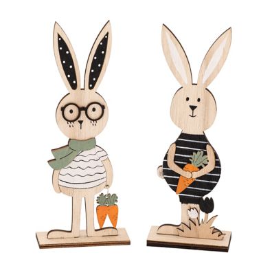 Deko-Hasen aus Holz, Farben: natur, schwarz, weiss, Grösse: 8 x 22,5 cm, Inhalt: 2 Stück.