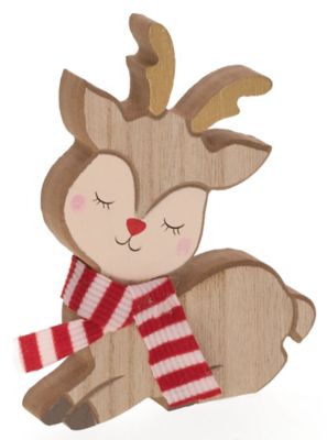 Das süsse Rentier aus Holz ist eine originelle Deko-Idee zur Advents- und Weihnachtszeit. Das Rentier hat eine rote Nase und einen rot-weissen Schal; die Hörner sind golden bemalt. Das Gesicht wurde mit zärtlichen Tönen verziert. Nutzen Sie das kleine Deko-Rentier als Blickfang auf der Fensterbank oder im Regal. Jetzt bestellen und auf Ihr Paket freuen!