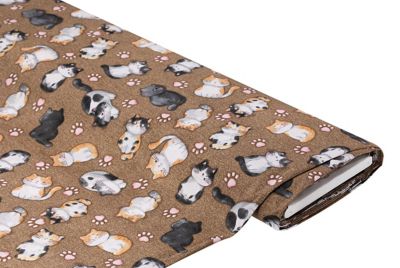 Dekostoff "Katzen" aus der Serie Lorena, Farbe: braun-color, Breite: 140 cm, Gewicht: ca. 170 g/m². Material: 50 % Baumwolle, 50 % Polyester.