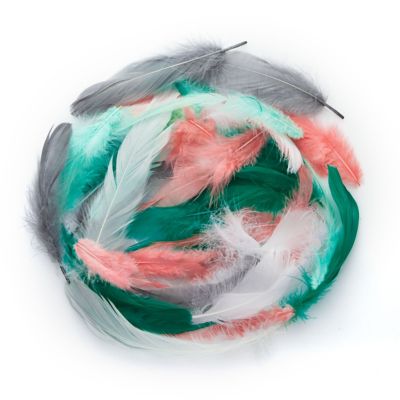 Echte Federn, Farbe: mint-pfirsich-grau, Grösse: 8–15 cm, Inhalt: 8 g = ca. 100–110 Federn.