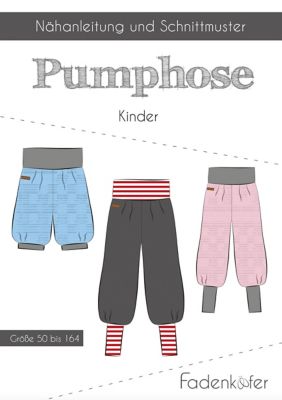 Sie sind herrlich bequem und können gestylt werden von niedlich bis cool: Pumphosen für Babys, Kleinkinder und Kinder! Noch dazu sind die Hosen im trendigen Aladin-Look superschnell und kinderleicht genäht. In den kleinen Grössen eignen sich Pumphosen übrigens hervorragend zum Verarbeiten von Stoffresten. Sie haben die Wahl zwischen langen Hosen und der sommerlich-kurzen Variante. Das Grössenspektrum reicht von Grösse 50 (Neugeborene) bis 164 (Teenager). Bestellen Sie jetzt den Fadenkäfer Papierschnitt "Pumphose" und starten Sie schon in wenigen Tagen an der Nähmaschine durch!