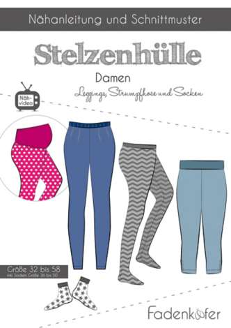Fadenkäfer Schnitt "Stelzenhülle" für Damen, Anleitung für 4 Modelle plus Socken, Grösse 32–58 (Socken Schuhgrösse 36–50), Schwierigkeitsstufe: leicht, Stoffempfehlung: Jersey, bi-elastische Stoffe.