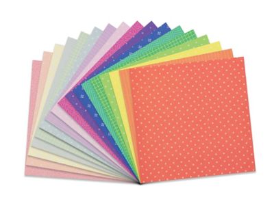 Faltblätter "Mustermix", Vorderseite: gemustert, Rückseite: weiss, Grösse: 15 x 15 cm, Gewicht: 70 g/m², Inhalt: 180 Blatt, inkl. Faltanleitungen.