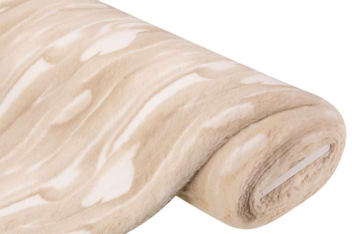 Fellimitat, Farbe: beige, Florhöhe: 1,5 cm, Breite: 150 cm, Gewicht: ca. 480 g/m². Material: 100 % Polyester.