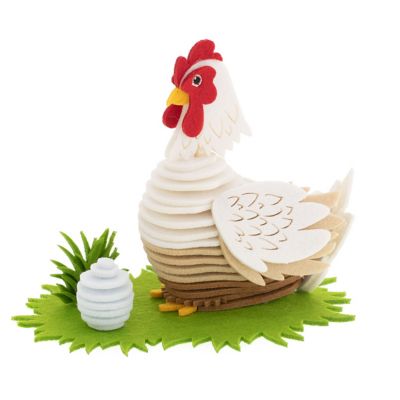 Bausatz "Huhn" aus Filz, zum Basteln eines Deko Huhns in der Grösse 16 cm, Inhalt: Filz-Stanzteile, Holzstäbe und eine Anleitung. Material: 100 % Polyester. Nur für Dekorationszwecke geeignet.