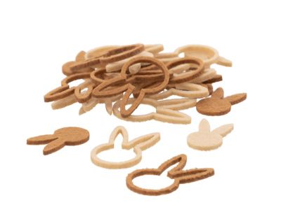 Streuteile "Hasenköpfe" aus Filz, Grösse: 2–4,5 cm, Inhalt: 48 Stück. Material: 100 % Polyester.