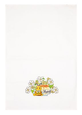 Geschirrtuch "Bienchen", zum Besticken in Kreuz- und Knötchenstich. Fertig genäht mit vorgedrucktem Motiv. Komplettpackung: Anleitung, Garn, Sticknadel. Stofffarbe: weiss. Grösse: 46 x 71 cm. Material: Stoff und Garn 100 % Baumwolle.
