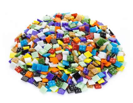 Glas-Mosaik im Mischpack, frost- und hitzebeständig, Grösse: 10 x 10 mm, Stärke: 3 mm, Inhalt: 750 g = ca. 1.080 Stück.