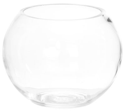 Glasgefäss, rund, Höhe: 11 cm, 15 cm Ø, Öffnung: 10 cm Ø.