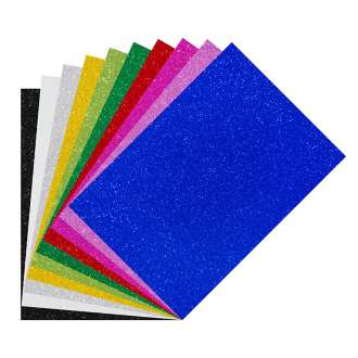 Glitzer-Moosgummi, farbig sortiert, Grösse: 21 x 29,7 cm (DIN A4), Stärke: 2 mm, Inhalt: 10 Bogen.
