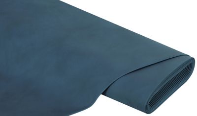Hochwertiges Kunstleder, Farbe: jeansblau, mit ledernarbiger Oberfläche und weissem, textilem Untergewebe, Stärke: 1 mm, Scheuerwert: 100.000 Touren, Lichtechtheit: 6, flammhemmend nach EN1021/Teil 1 und 2, Breite: 140 cm, Gewicht: ca. 540 g/m². Material: Nutzschicht: 100 % Polyvinylchlorid, Untergewebe: 65 % Polyester, 35 % Viskose.