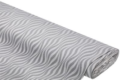 Jacquard "Wellen", Farbe: grau, Rapport: 12 cm, Breite: 160 cm, Gewicht: ca. 230 g/m². Einlaufwerte: 2–3 % in Länge und Breite. Material: 60 % Polyester, 40 % Baumwolle.