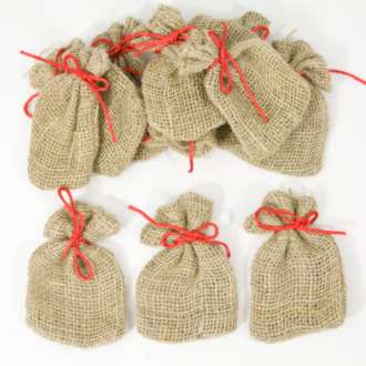 Diese Jutesäckchen bieten eine wunderbare Grundlage für einen selbst gebastelten Adventskalender. Diese können nach Herzenslust befüllt werden. Ob einzeln aufgestellt oder mit einer Klammer an einer langen Schnur befestigt, Ihrer Fantasie sind keine Grenzen gesetzt. Mit einem rotem Zugband zum Verschliessen. Ideal aber auch für kleine Geschenke zum Nikolaus.