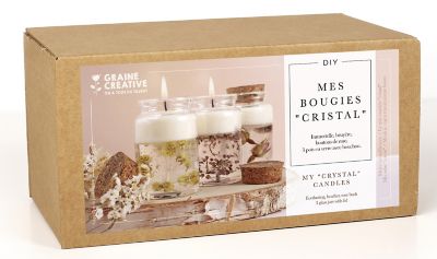 Kerzen-Bastel-Set "Trockenblumen" zum Giessen von 3 Kerzen im Glas. Grösse Glas: 7,5 cm, 4,5 cm Ø, Inhalt: 3 Gläser mit Korken, 3 Dochte, Trockenblumen (Strohblumen, Heidekraut und Rosenknospen), 75 g Sojawachs weiss, 150 g Kerzengel transparent und eine Anleitung.