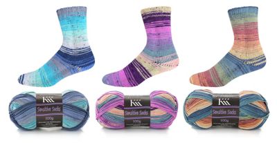 KKK Sensitive Socks Color "Pastell". Das Sockengarn für Wollallergiker mit pastelligem Farbverlauf! Durch die Materialzusammensetzung ist das Garn besonders angenehm auf der Haut zu tragen, ist sehr elastisch und hat dadurch eine sehr gute Passform. Zudem ist das Garn waschmaschinenfest. Durch die schönen Farbverläufe kommt der Effekt ohne grossen Musteraufwand direkt aus dem Knäuel.