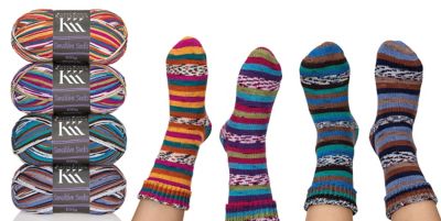 KKK Sensitive Socks Color "Stripes". Das Sockengarn für Wollallergiker! Durch die Materialzusammensetzung ist das Garn besonders angenehm auf der Haut zu tragen, ist sehr elastisch und hat dadurch eine sehr gute Passform. Zudem ist das Garn waschmaschinenfest. Durch die schönen Farbverläufe kommt der Effekt ohne grossen Musteraufwand direkt aus dem Knäuel.
