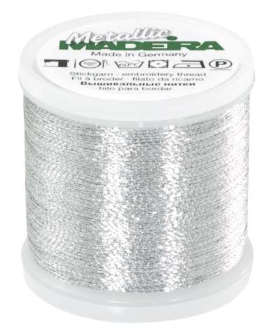 Mit dem MADEIRA Stickgarn Metallic gelingen Ihnen effektvolle Stickarbeiten – ob mit Ihrer normalen Nähmaschine oder einer Haushaltsstickmaschine. Metallic Brilliant sorgt durch seine Metallisierung mit reinem Silber für klassische Eleganz und ermöglicht zudem ein Versticken des Garns auf anspruchsvollsten Stoffen bei höchster Maschinengeschwindigkeit ohne Fadenbrüche. Dieses Metall-Effektgarn verleiht Ihren Stickereien einen Hauch von Luxus!