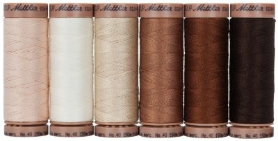 Mettler Silk Finish Cotton "Natur", empfohlene Nadelstärke: 80 - 90, Fadenstärke: 40, Inhalt: 6 Spulen à 150 m. Material: 100 % Baumwolle.