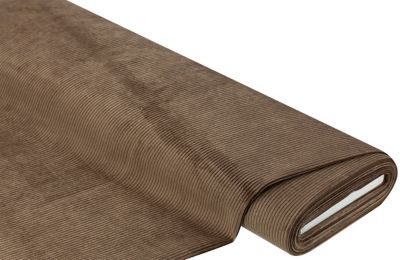 Möbel-Cord, Farbe: toffee, Rippenbreite: 4 mm, mit weissem textilem Untergewebe, Scheuerwert: 40.000 Touren, Lichtechtheit: 4, Breite 140 cm, Gewicht: ca. 280 g/m². Material: 90 % Polyester, 10 % Polyamid.