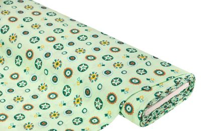 Musselin/Doppel-Gaze "Kreise", Farbe: hellgrün-color, Motivgrösse Kreis: 3 cm Ø, Breite: 135 cm, Gewicht: ca. 110 g/m². Material: 100 % Baumwolle.