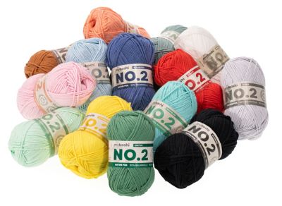 myboshi Wolle No. 2. Ob Sommer-Boshis, Schals, Häkeltiere oder Kuscheldecken – myboshi No. 2 ist ein wahres Multitalent. Dank der Zusammensetzung aus Baumwolle und Kapok – der leichtesten Naturfaser der Welt – ist ein besonders leichtes Garn in vielen sommerlichen Trendfarben entstanden. myboshi No. 2 ist ein ökologisch hochwertiges Naturprodukt. Aufgrund seiner Reinheit und Speichelechtheit eignet es sich auch für Baby- und Kleinkind-Mode.