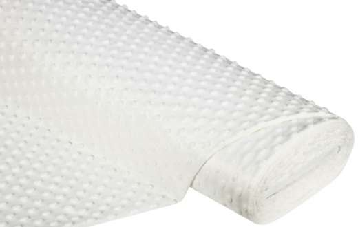 Noppen-Fleece "Minky", Farbe: offwhite, querelastisch, mit 3D-Noppen, Noppengrösse: ca. 1 cm Ø, Breite: 150 cm, Gewicht: ca. 250 g/m². Material: 100 % Polyester.