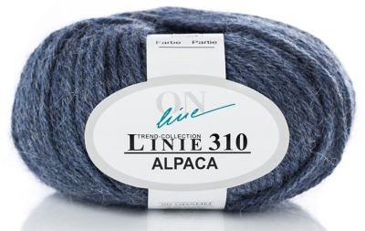ONline Alpaca, Linie 310. Diese Markenqualität besteht aus 100 % wärmendem Alpaka. Sie hat einen angenehmen Griff, einen leicht seidigen Glanz, ist sehr elastisch und isolierend. Modelle wie Pullover und Westen halten Sie im Winter wohlig warm. Ein Muss für jede Strickerin!