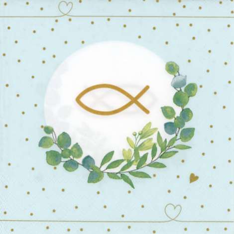 Papierservietten "Fisch Kommunion", 33 x 33 cm, 20 Stück