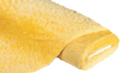 Plüschstoff mit glatter Rückseite, Florhöhe: 10 mm, Farbe: gelb, Breite: 150 cm, Gewicht: ca. 225 g/m². Material: 80 % Polyacryl, 20 % Polyester.