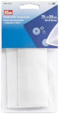 Jeder der gerne mit Druckknöpfen oder Ösen arbeitet, kennt das Problem: Bei feinen, empfindlichen Stoffen kann es schnell einmal passieren, dass diese nach einiger Zeit ausreissen. Nicht so mit den Power-Dots von Prym: Die runden Bügelpunkte aus Zellulose verstärken den Stoff und sorgen dadurch für mehr Stabilität. Einfach vor dem Anbringen der Ösen oder Druckknöpfe auf die linke Stoffseite aufbügeln; die Bügelpunkte verbinden sich mit dem Stoff und sind im Anschluss auch garantiert nicht mehr sichtbar.