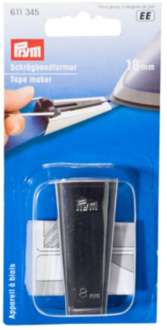 Prym Schrägbandformer "schmal", zum Falten von Schrägbändern in der Breite 18 mm, Grösse: 6 x 1,8 cm, inkl. Gebrauchsanleitung. Material: Metall.