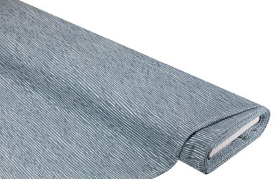 Exklusiv von buttinette: reiner Baumwolljersey "Linien", Farbe: jeans/weiss, leicht querelastisch, Breite: 160 cm, Gewicht: ca. 220 g/m², Einlaufwerte: 3–5 % in Länge und Breite. Material: 100 % Baumwolle.