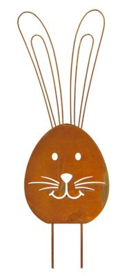 Rost-Hase aus Metall, Farbe: braun, Grösse: 34 cm, Stablänge: 7 cm.