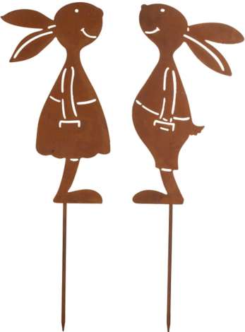 Rost-Hasenpaar aus Metall, Farbe: braun, Grösse: 25 x 13,5 cm, Stablänge: 16 cm, Inhalt: 2 Stück.